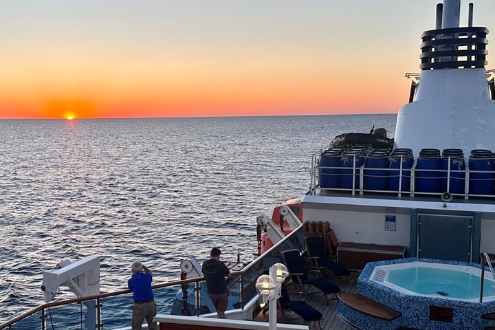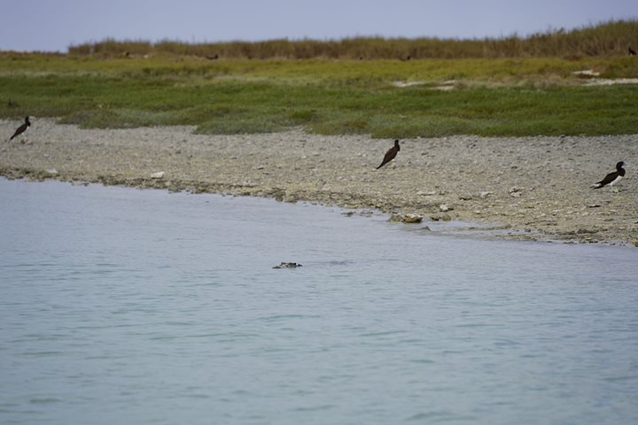 After a well-deserved rest, it was time to visit the spectacular Montgomery Reef in our modern rafts, the Zodiacs. We explored the cascading flowing channels, sighting many green turtles and eastern reef egrets. The importance of this unique ecosystem was evident, as it represents the largest inshore reef system in Australia. The vast area (400km2) of shallow, sheltered, sunlit lagoons and pools of the reef platform supports a great diversity, and is home to a vast plethora of marine life including dugong, reef sharks, rays, birds, and an extremely large population of turtles who feed on the seagrass beds.