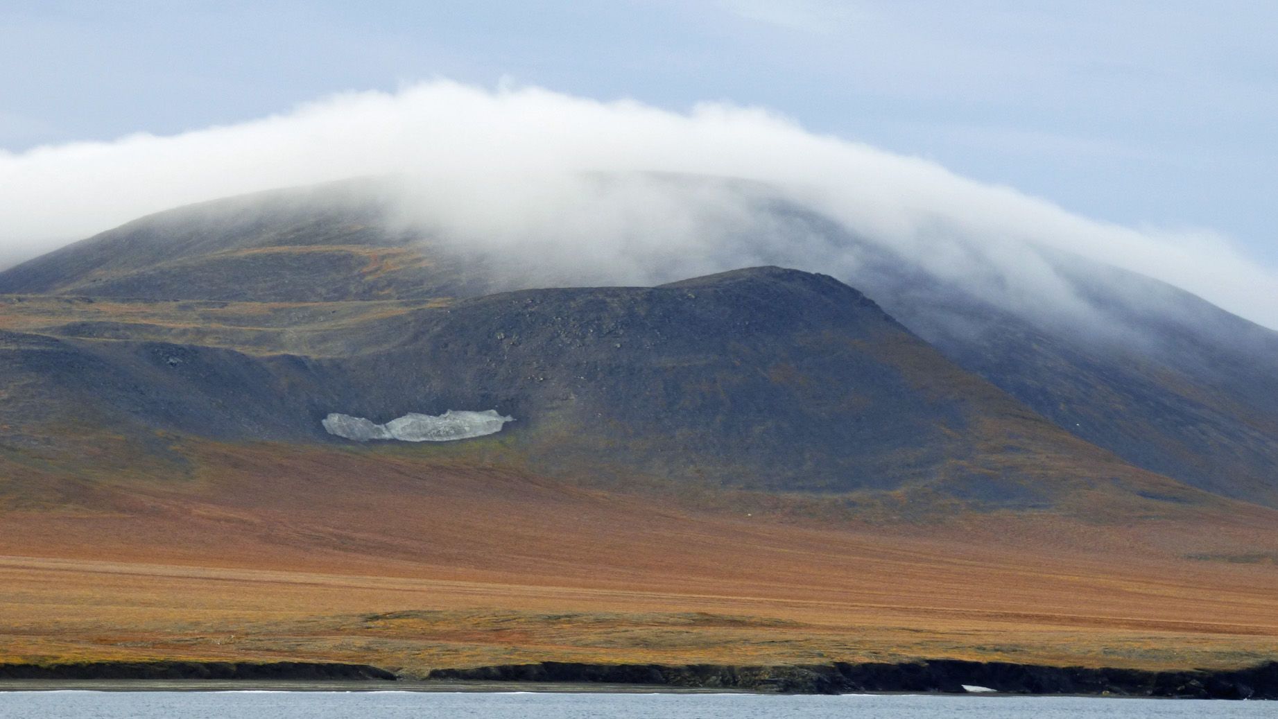 As on Wrangel Island, there were many polar bears spotted on the island, on top and clambering along what seemed very steep slopes. Off in the distance another was spotted on a narrow beach.