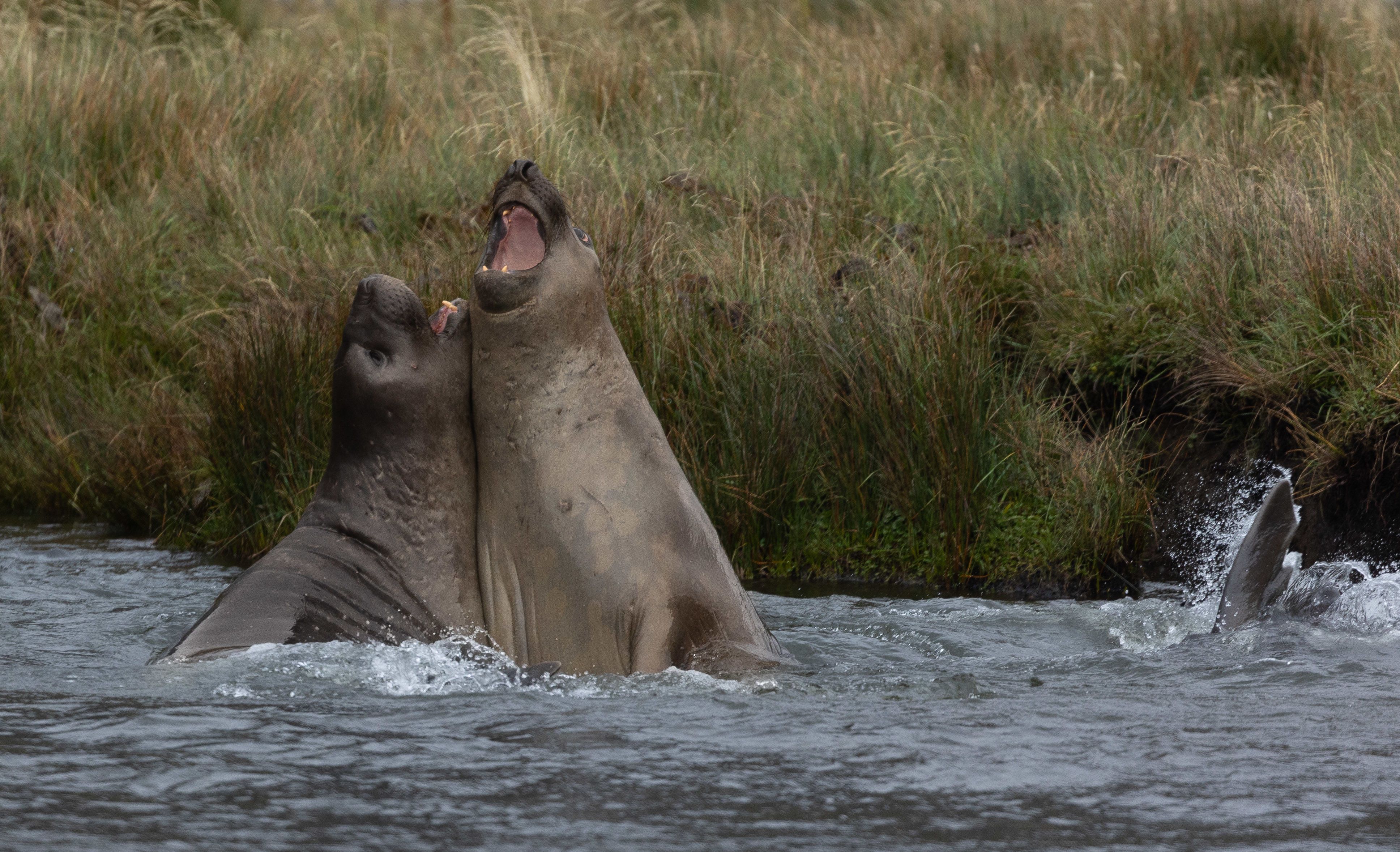 In the afternoon, we landed on Cerro Brujo. We spent a couple of hours on a nice white-sand beach. The bay has an amazing turquoise sea. We saw many blue-footed boobies fishing; these birds were diving repeatedly, sometimes in groups of three to five at the same time. The beach also has a colony of sea lions, and we saw them nursing their pups. Pelicans and other seabirds were busy catching some fish. In the foreground, we could see the majestic Kicker Rock. What a scenario in which to say goodbye to Galapagos.