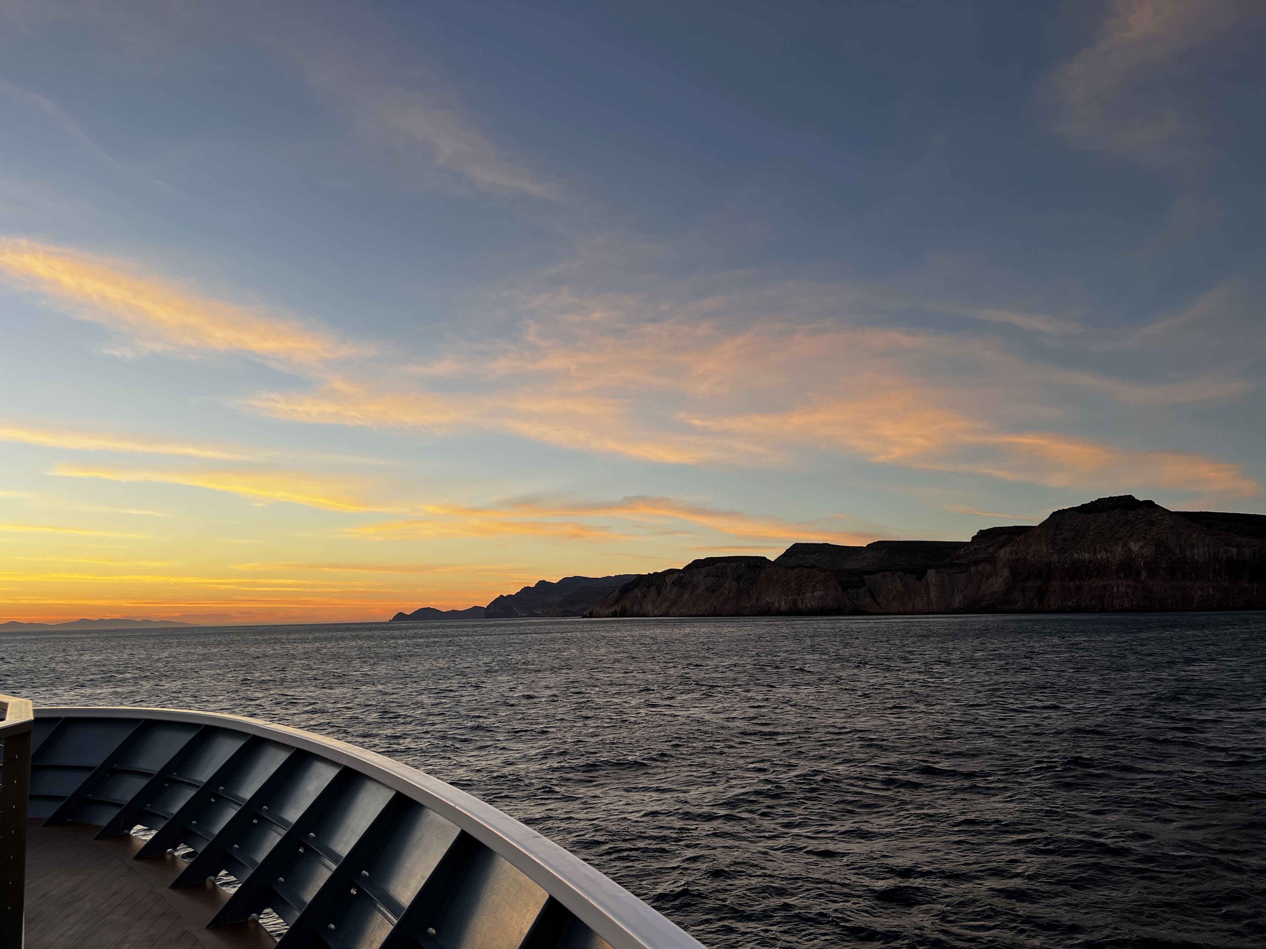 This morning, we embarked on a scenic hike at Punta Pitt, San Cristóbal Island, where we found all three booby species - red-footed, blue-footed, and Nazca. We also took a Zodiac ride along the rugged coastline for close-up views of dramatic cliffs, surrounded by seabirds and sea lions basking in the sun. In the afternoon, we kayaked around Cerro Brujo’s golden cliffs, followed by a relaxing stroll along its pristine white-sand beach. Some even enjoyed a refreshing swim in the turquoise waters. This perfect day ended with a cruise around Kicker Rock, lit in the golden light of sunset.