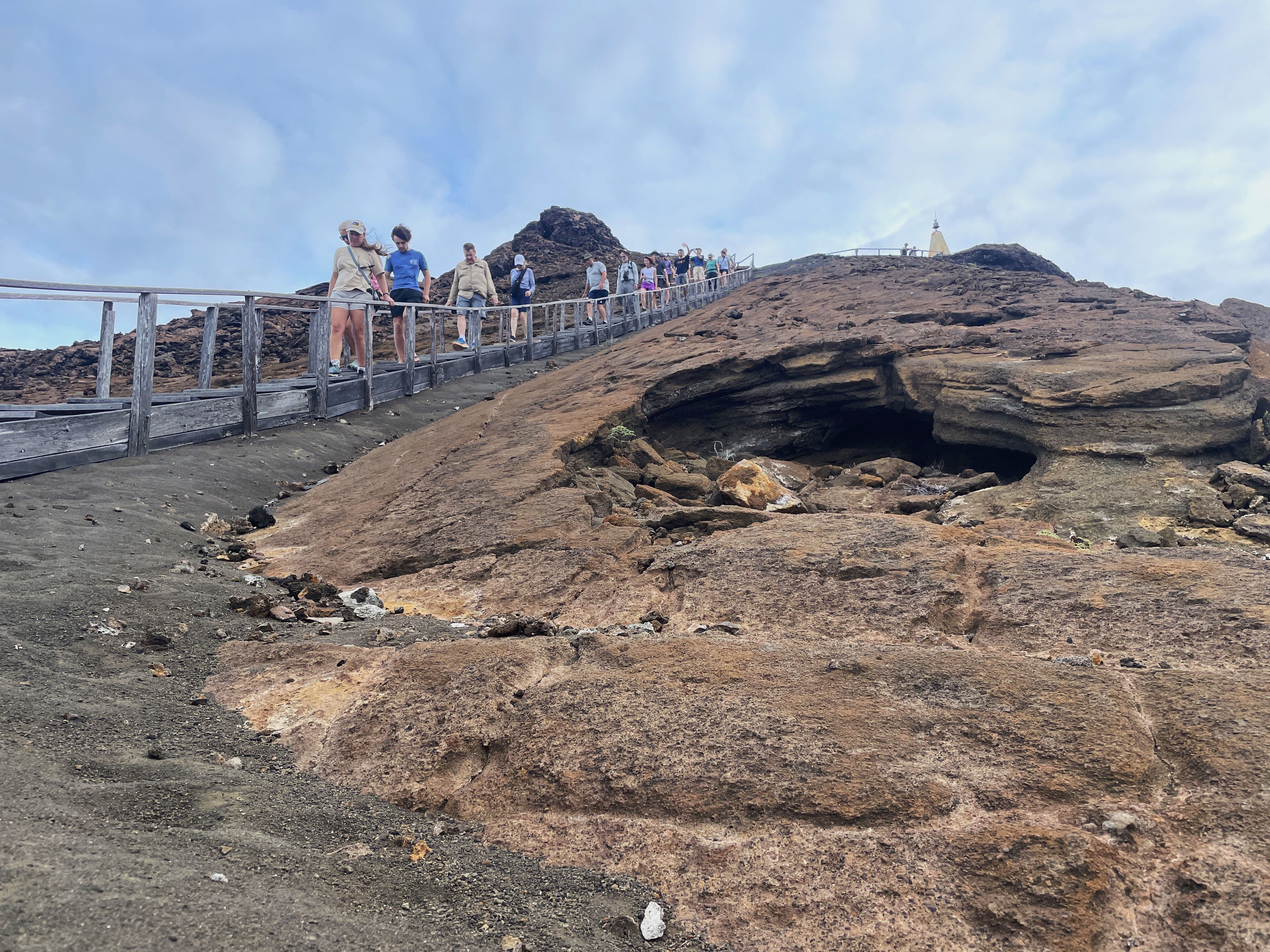 As we arrived at the northwest region of Santa Cruz Island, our first outing was a morning walk around the arid zone of Dragon Hill. The landscape offers a variety of contrasting colors, such as: the older lava rocks, dense coastal vegetation, giant prickly pear cacti, and the sunny sky. We walked along the trails and learned all about Galapagos land iguanas. We were so lucky to experience a skirmish between two male land iguanas that were clearly fighting for territory — they hurt each other so significantly that they were bleeding from the bites. This is something that we don’t see all the time, and it was an incredible experience.