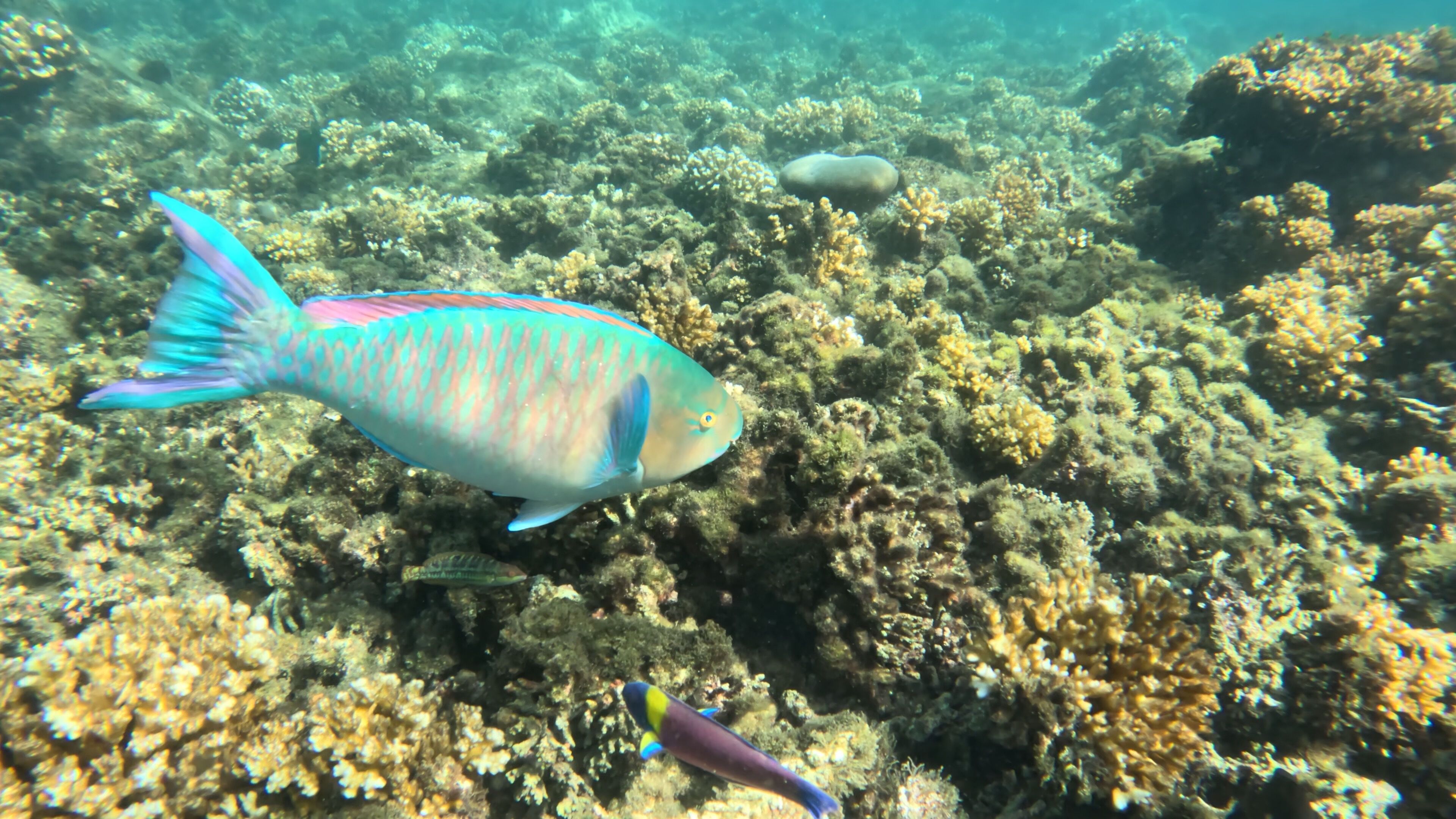 After visiting Dragon Hill, we returned to the ship to prepare to discover the incredible underwater world surrounding the small islet of Guy Fawkes. While snorkeling, we saw many whitetip reef sharks, stingrays, sea turtles, and even a sea lion feeding on a tuna in the sea.