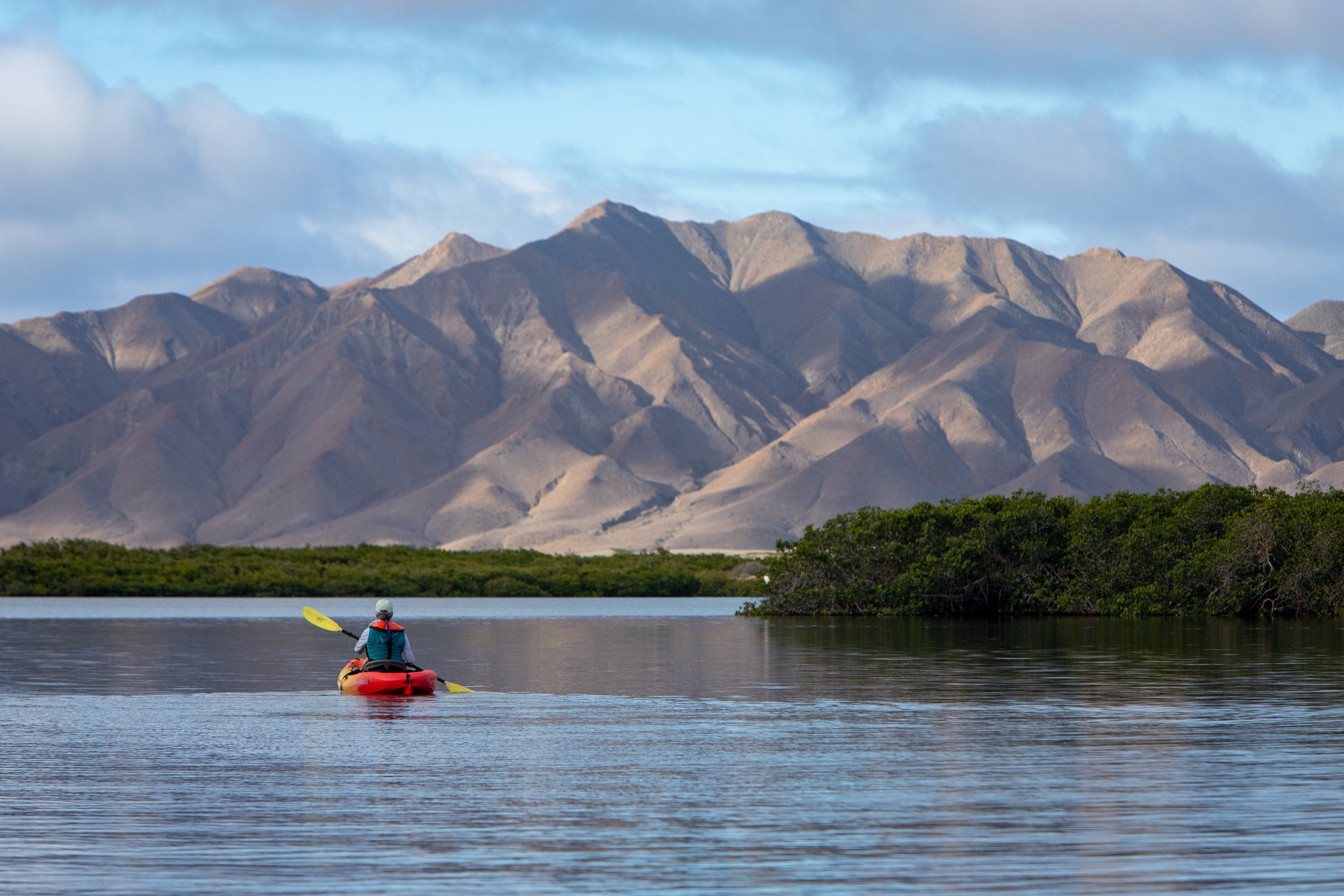 Our day in the Galapagos began at Punta Pitt, where we made a wet landing on volcanic sand, greeted immediately by a baby sea lion and a white morph red-footed booby at the shore. We started our ascent up the hill, spotting numerous red-footed boobies along the way and even a blue-footed booby! The landscape was breathtaking, with vibrant red hues in the vegetation and layers of orange tuff stone creating a stunning backdrop. In the afternoon, we explored Cerro Brujo on the western side of San Cristobal Island. After landing on semi-volcanic sand, we strolled among large colonies of sea lions, leading us to a stretch of pure, powdery white sand. We joined our wellness specialist for a stretching session, then walked along the beautiful beach, marveling at the unique volcanic landscape around us. Before the sun set, we returned to National Geographic Islander II and our captain took us to Kicker Rock, an iconic eroded ash cone and a nesting site for many seabirds. With the rock glowing in the evening light, our guests raised a final toast to celebrate an unforgettable day in this extraordinary place.