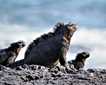 In the afternoon, we visited Puerto Egas, where we made a wet landing on a beautiful black sand beach. We walked along a loop trail that took us around the shoreline to the inside of the island. On the coast, we observed sea lions, various shorebirds, and marine iguanas. The beautiful landscape featured many volcanic shapes. One of the most famous is a basaltic rocky bridge.