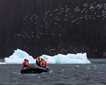 Since John Muir’s visit of this area in 1880, glacial retreat has split Tracy Arm’s glaciers in two: Sawyer and South Sawyer glaciers. This morning, we opted for Sawyer. Hopping into our inflatables, we negotiated through ice and stopped at many towering waterfalls. Bergs here come in endless variety. Some are gigantic, others tiny and delicate. Not only were we witness to several large calving events, but on our way to the glacier face we were greeted by a posing harbor seal perched on a piece of ice. To cap off the glacier tour, the guests were intercepted by by a friendly crew of “Vikings” who served us hot chocolate in front of the glacier!