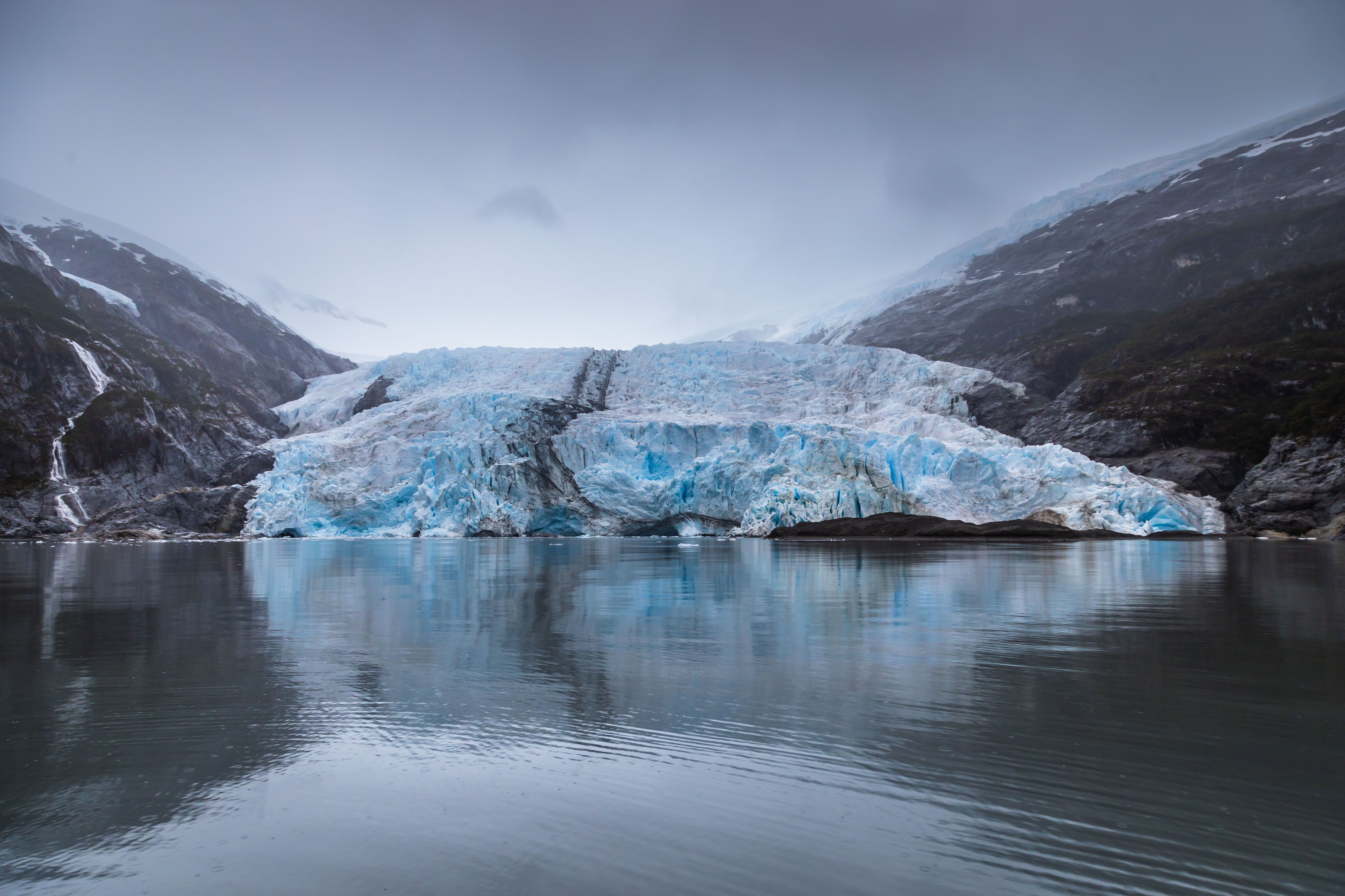 Dawn broke, and we found ourselves in a calm oasis. The weather map showed strong winds in the extended environment. With gratitude to our captain and expedition leader who worked hard to place us in a relatively wind-free zone, we took to our Zodiacs to cruise up to the Serrano Glacier. While we were up there, we enjoyed close views of the tidewater glacier face, countless waterfalls, and several showy ashy-headed geese.