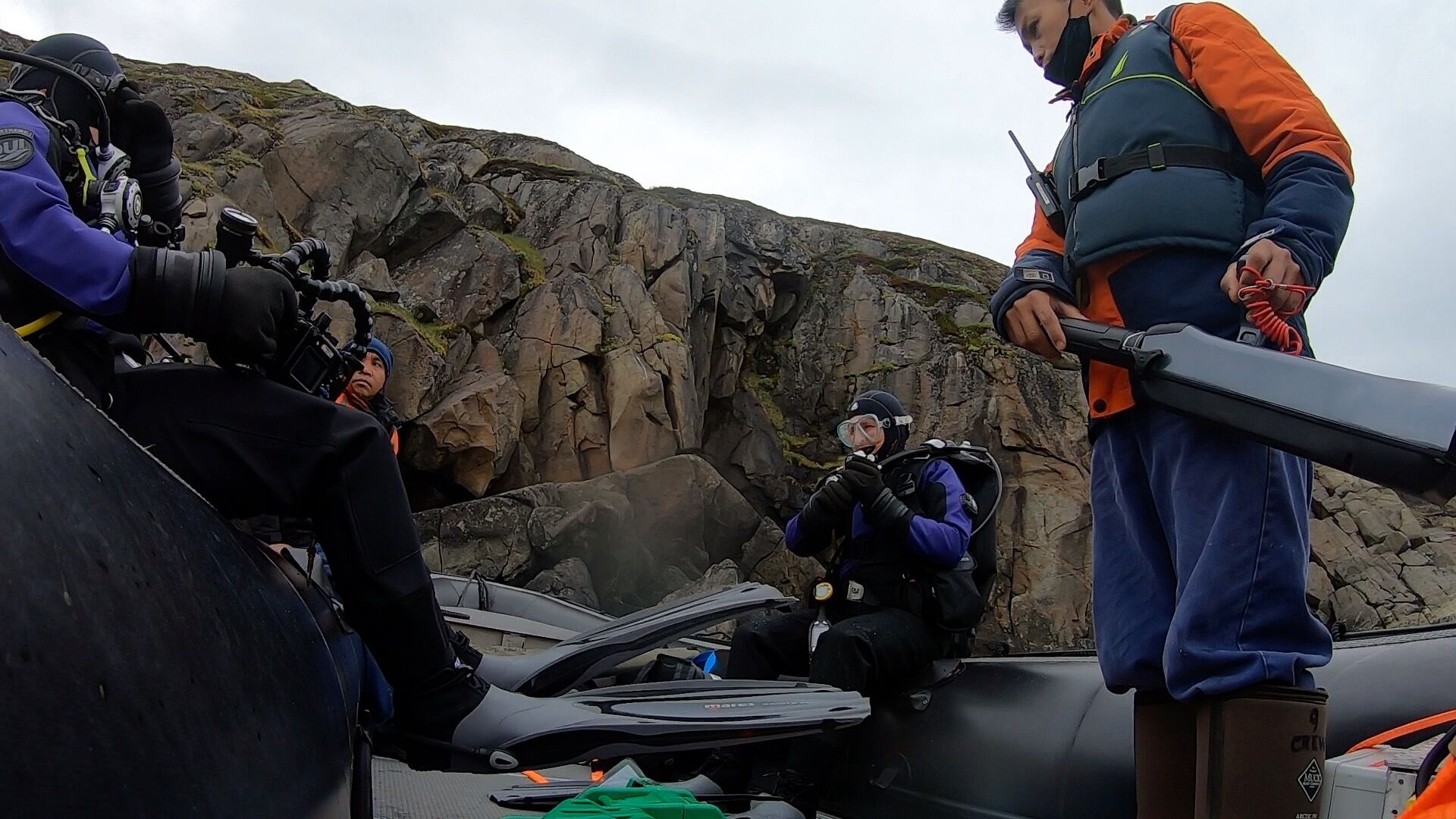 Of all the sights to wake up to, bubble-netting humpback whales may be the most memorable. This morning, these gentle giants won our hearts during a spectacular display in which more than ten individuals collaborated to herd fish to the surface using a net of bubbles. We held our breath on deck, waiting, waiting, then THERE – ten whales burst through the surface, their throats ballooning with gallons of water as they strained a salty breakfast through their baleen plates. Our undersea team quickly deployed a hydrophone and broadcasted the whales’ hauntingly beautiful call, a soundscape arguably unmatched by any other on this planet. We gasped, hugged, thanked the whales, and stumbled back inside to eat a breakfast of our own, digesting our awe along the way.