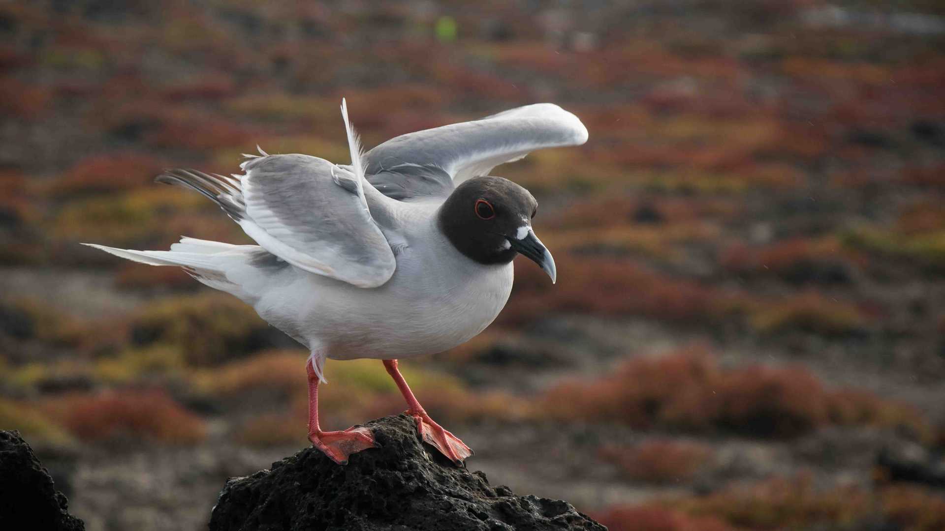 Relatively small and low compared to neighboring Santa Cruz, North Seymour is located to the north of Baltra. The island is dry with predominantly low shrubs, like prickly pear cacti. The incense trees are bare during the dry season. Seabirds like frigatebirds and blue-footed boobies nest on the island, and sea lions rest on the sand when they are not fishing. Land and marine iguanas also live here. Rabida is in the middle of the archipelago and has a striking red sand beach. We observed a small colony of sea lions of all ages resting or nursing. Behind the beach, American flamingos nest in a brackish lagoon. This island is full of contrasts and wildlife that we enjoyed observing during this day of expedition.