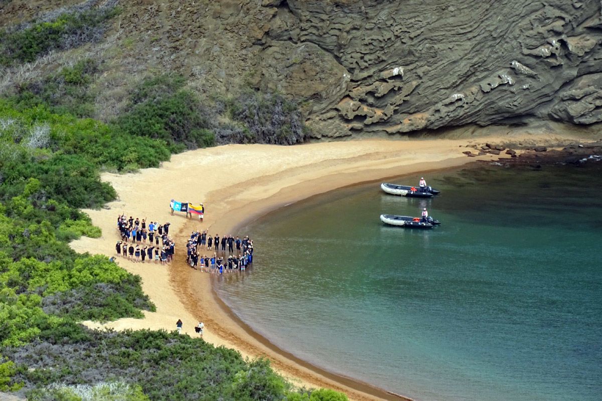 After this magical morning visit we went back to the ship to join a presentation. Naturalist Gustavo Castro talked about one of his favorite subjects, the human history of the Galapagos Islands. After the presentation we had an amusing activity: swimming and jumping off the ship!