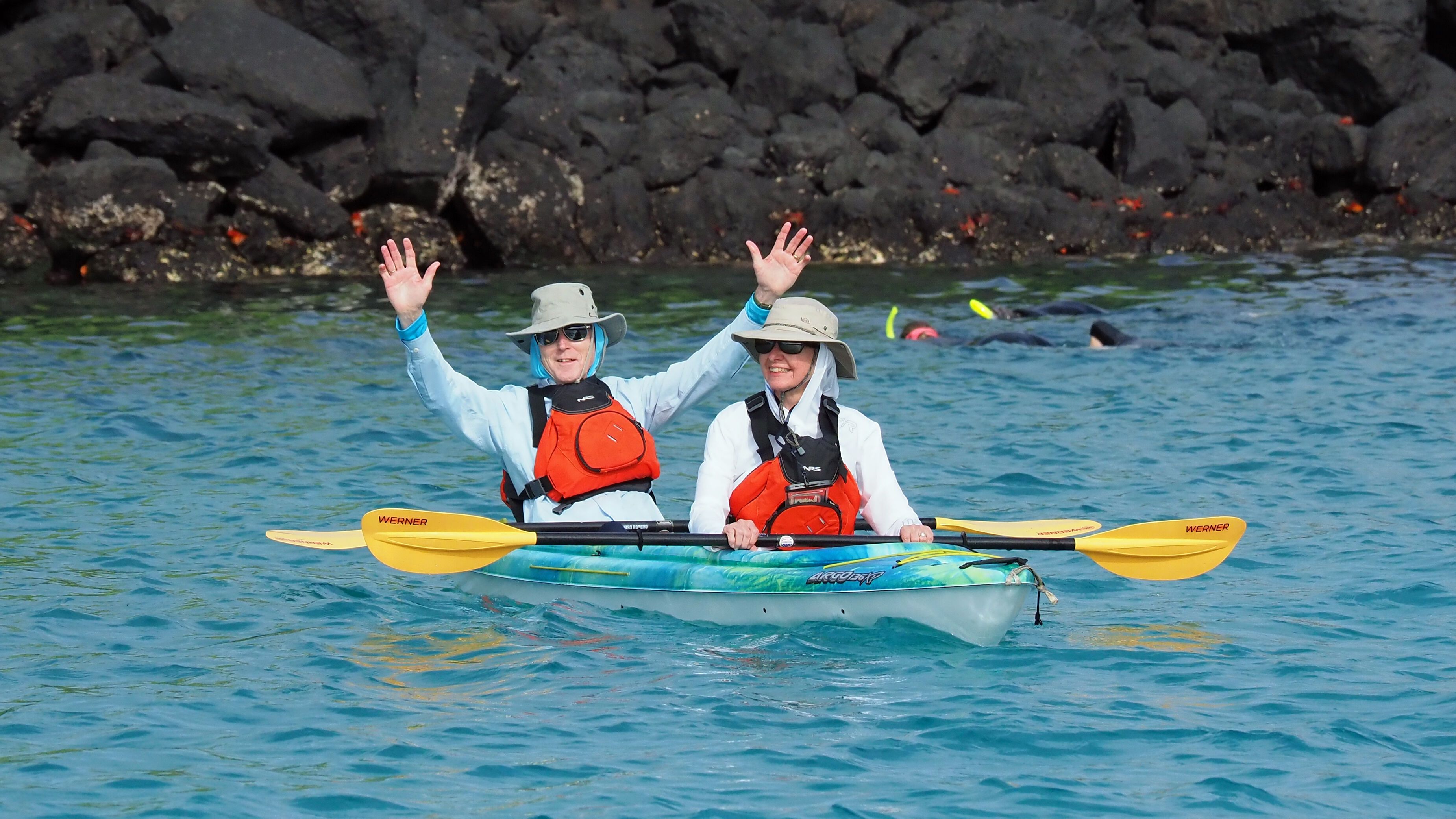 Lunch was served, and then we started our water activities. We snorkeled and kayaked among sea lions, turtles, schools of fish, and whitetip sharks. Today was particularly fun for those kayaking, as they got a close look at a sea lion that brought a fish out of the water for feeding.