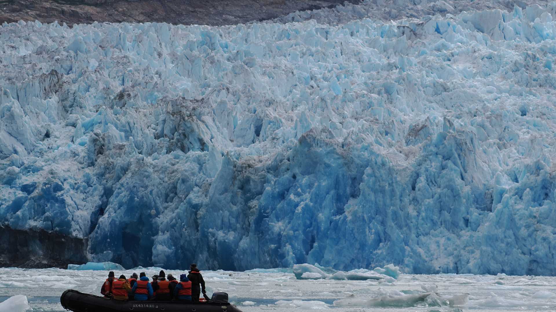 After a warm and sunny week, we finally had the chance to pull out our “Alaska” clothing in the cool breezes coming down from South Sawyer Glacier. We nourished ourselves with hearty breakfasts, bundled up in layers, and headed out on Zodiac cruises toward the face of the glacier. We coasted slowly through fields of ice, past icebergs and the curious eyes of harbor seals. We made our way to lookouts about a half-mile from the face of the glacier, and turned off the motors to patiently wait for calving events and to enjoy some silence. We were lucky to see some ice calving and even a shooter (a piece that calved from beneath the water line) while the thunderous sound echoed off the steep rock walls of the fjord. It was a spectacular scene to witness.
