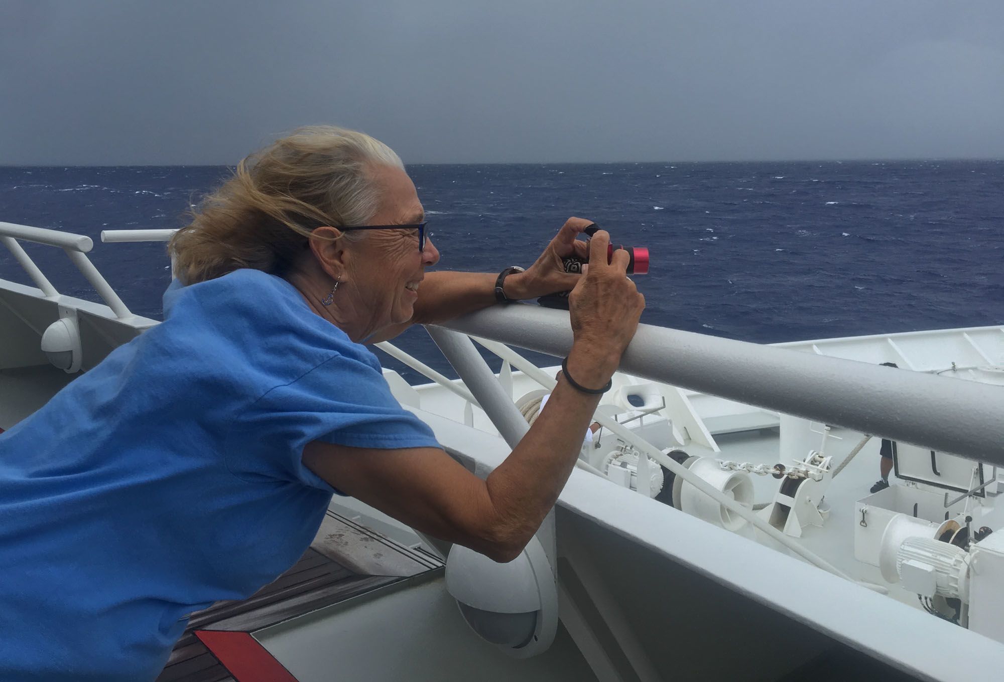 We anchored off Queen Charlotte City just as the dawn broke across the islands of Haida Gwaii, and had our first look at this remote and fascinating archipelago. After breakfast we got into our Zodiacs and went ashore for a morning outing by motor coach to the Haida Gwaii museum complex. It was a gorgeous sunny day, even T-shirt weather. We were greeted by a young Haida woman and then taken on tour through the amazing displays of the museum and told wonderful stories about the totem poles and giant canoes on display on the grounds and in the canoe shed. Our guides were so knowledgeable about all aspects of Haida life, art and crafting and answered all our questions—even the probing ones. My personal favorite display was the exquisite war canoe carved by the famous Haida carver, Bill Reid.