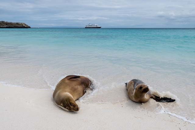 Guests who wished for more of a natural history tour chose to visit Gypsy Cove instead. From the bluffs above the cove, they watched Magellanic penguins stroll along the white sand beach while Falkland steamer ducks taught their young how to swim in the surf. The trail also passed by penguin burrows where it was possible to see adult penguins guarding their eggs inside. For those who waited patiently, the penguins would occasionally let out a soft baying call that was reminiscent of a muted donkey.