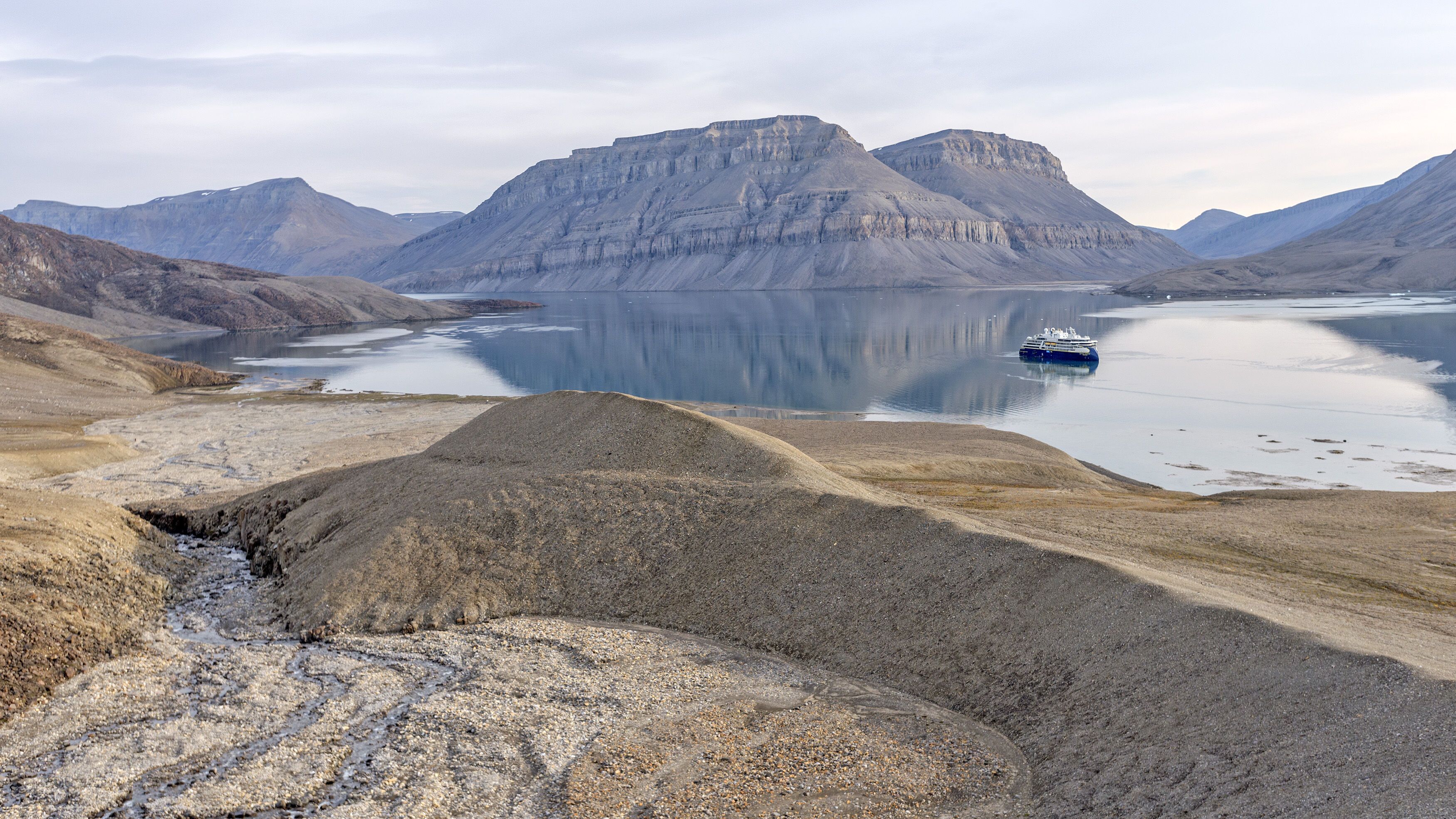 Lasts evening, the ship sailed deep into Starnes Fjord on the southwest corner of Ellesmere Island. We spent a quiet night there, escaping the winds and ice of Jones Sound.