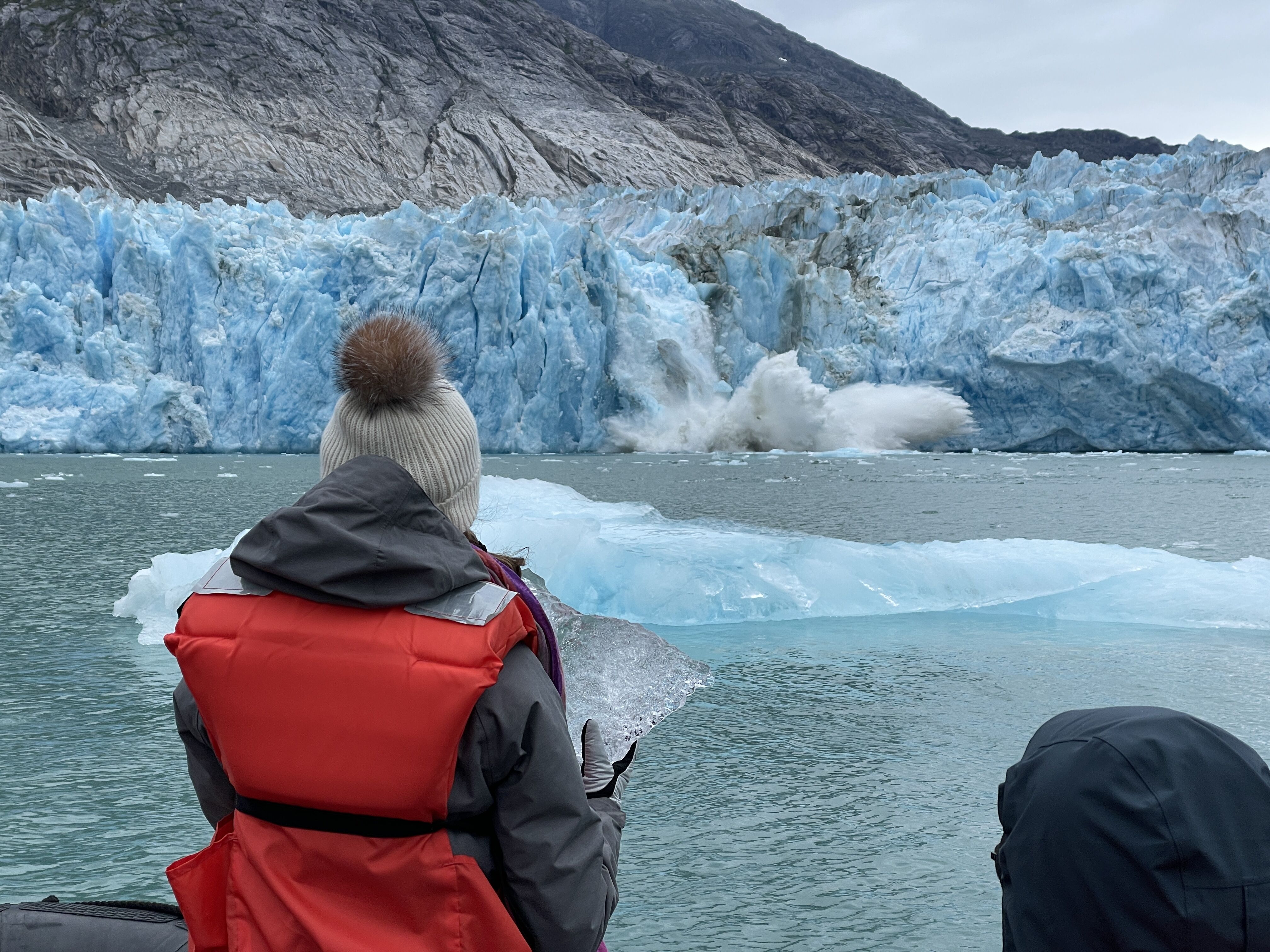 Today, guests explored the wild beauty of a 35-mile-long fjord that terminates in our final tidewater glacier of the expedition. Here, those that are brave enough to venture into the cold will get as close as is safe to the face of the glacier in Zodiacs, hoping for some calving or wildlife to show.