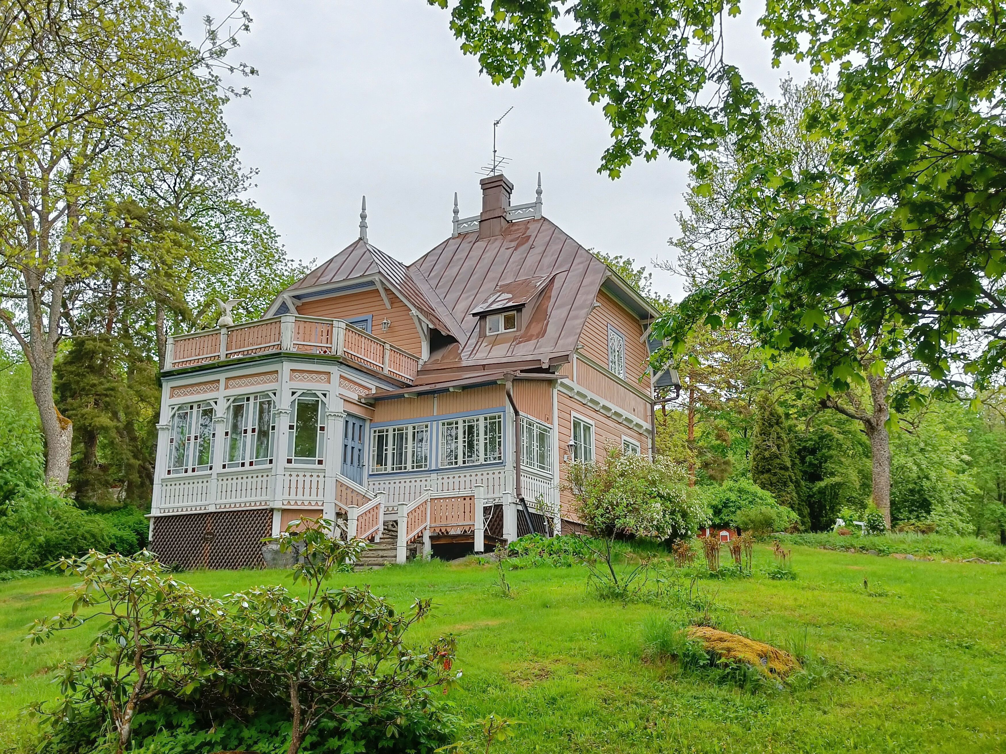 Our first activity of the day was a drive out to the town of Ruissalo, known for its collection of beautiful wooden villas dating from the 1850s. There are over 200 historically protected villas here, and we had an opportunity to walk along the wooded path. We admired the balconies, decorative railings, stained glass, and intricate trelliswork, as well as the charming bathing huts with their floating decks.
