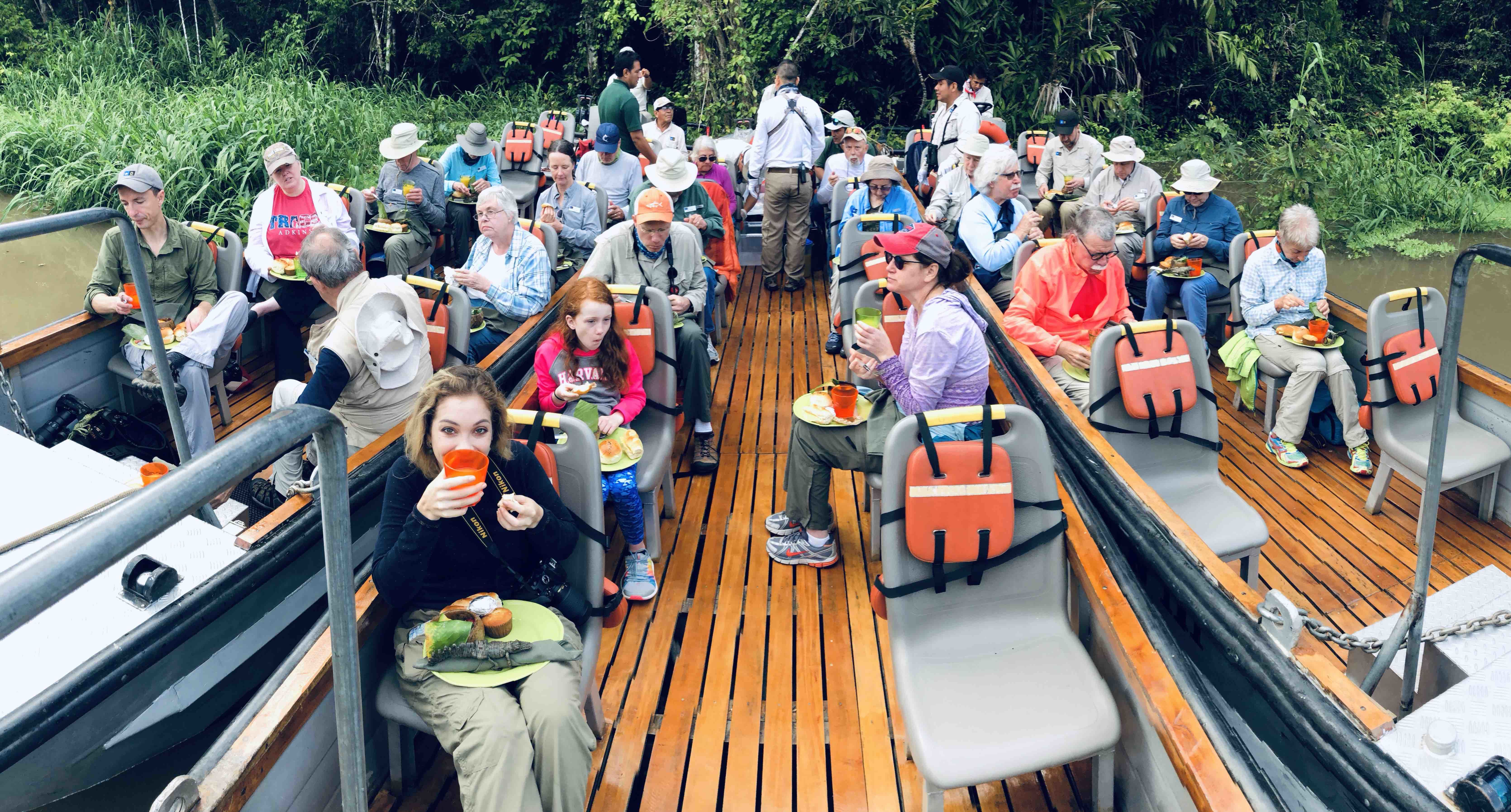 Leaving Delfin II at 06:00 for our morning skiff ride, we explored the Marayali River. The birds were up and working on obtaining breakfast while the three-toed sloths chose to sleep the morning hours away. On our way back to the ship, we encountered a snail kite having its namesake prey for breakfast right in front of us! The rest of the morning was spent at Amazonas Village getting an introduction to life along the river. Demonstrations of how to get sugar water out of cane, how to make and dye fiber for baskets and other items, as well as food preparation were given. We chatted with children who had monkeys as pets! Our evening was topped off by a toast to the beginning of the actual Amazon River, where the Marañon and Ucayali Rivers converge. Salud! This is my final daily expedition report as a full-time Lindblad employee. I am retiring after 21 years as a National Geographic certified photo instructor and naturalist, ready to begin a new life of travel and exploration. I want to give a big thank you to all of those Lindblad guests whom I have traveled with over the years, and I will leave you with these words: Travel as often as you can, as far as you can, for as long as you can. May God and your luggage be with you!