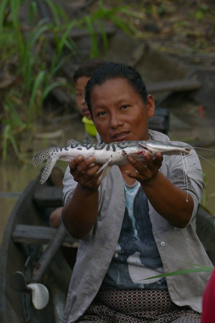 Later in the afternoon, Javier spoke of, and gave a tasty presentation on, the local rainforest fruits which included palm fruits, brazil nuts, tagua nuts and wild mango. Our day ended with a late afternoon skiff ride that stayed out past sunset. We came home riding under a star-studded sky after a riverside search for caiman.
