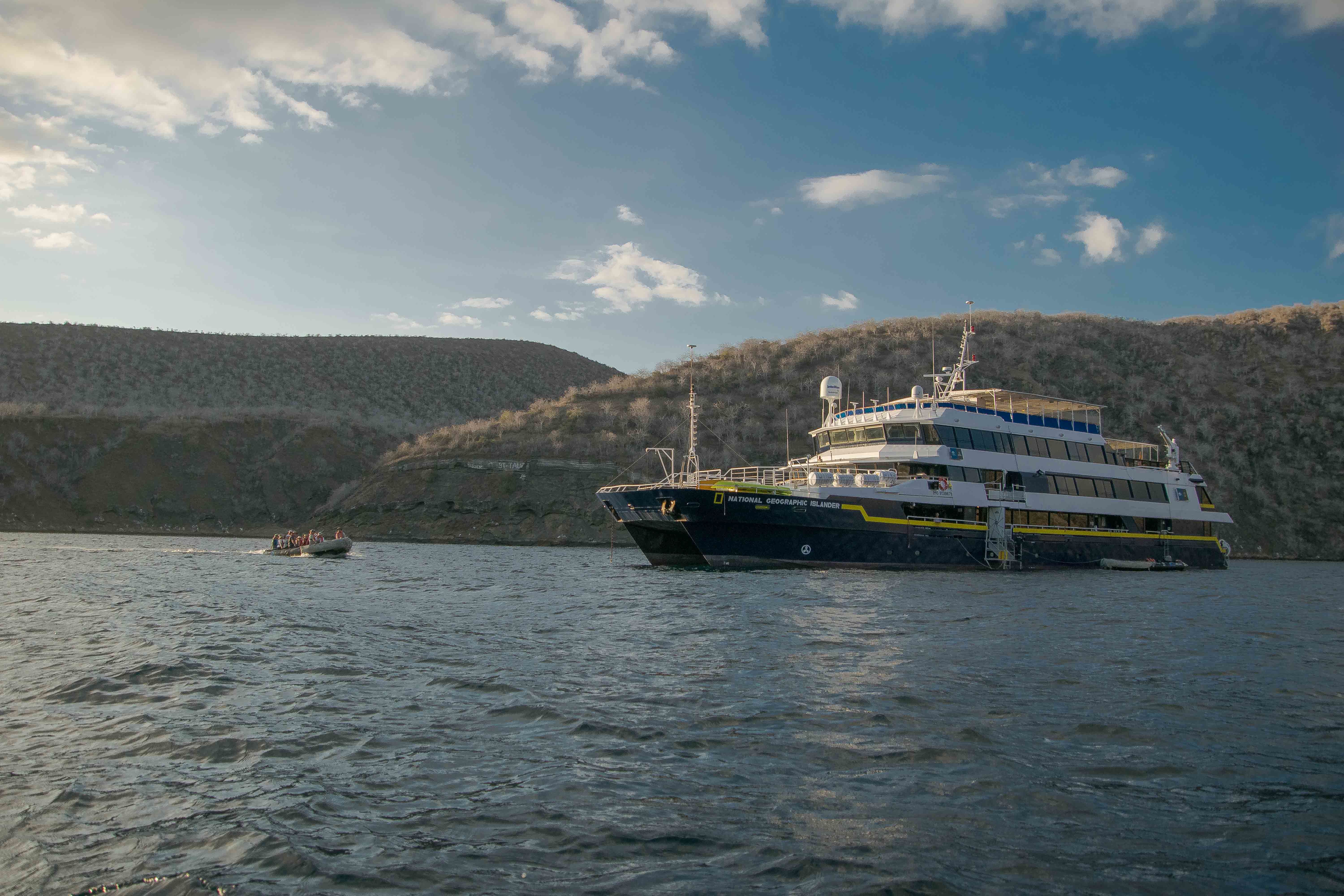 Back onboard, we had lunch and enjoyed a presentation about iPhone photography. In the afternoon, we snorkeled in Tagus Cove. The water visibility was wonderful, and we spotted several sea turtles, flightless cormorant fishing and penguins playing acrobatics in the water. We even spotted a Galapagos bullhead shark, a rare and fascinating species of shark which can only be found on few areas around the Galapagos Marine Reserve. To end up our day, some of our guests took a hike to enjoy an incredible view of the several of Isabela’s volcanoes, while others took the Zodiac ride option where we saw blue footed boobies, pelicans, flightless cormorants, penguins and cute sea lion pups.  The colors during the sunset were impressive, just like our whole day.