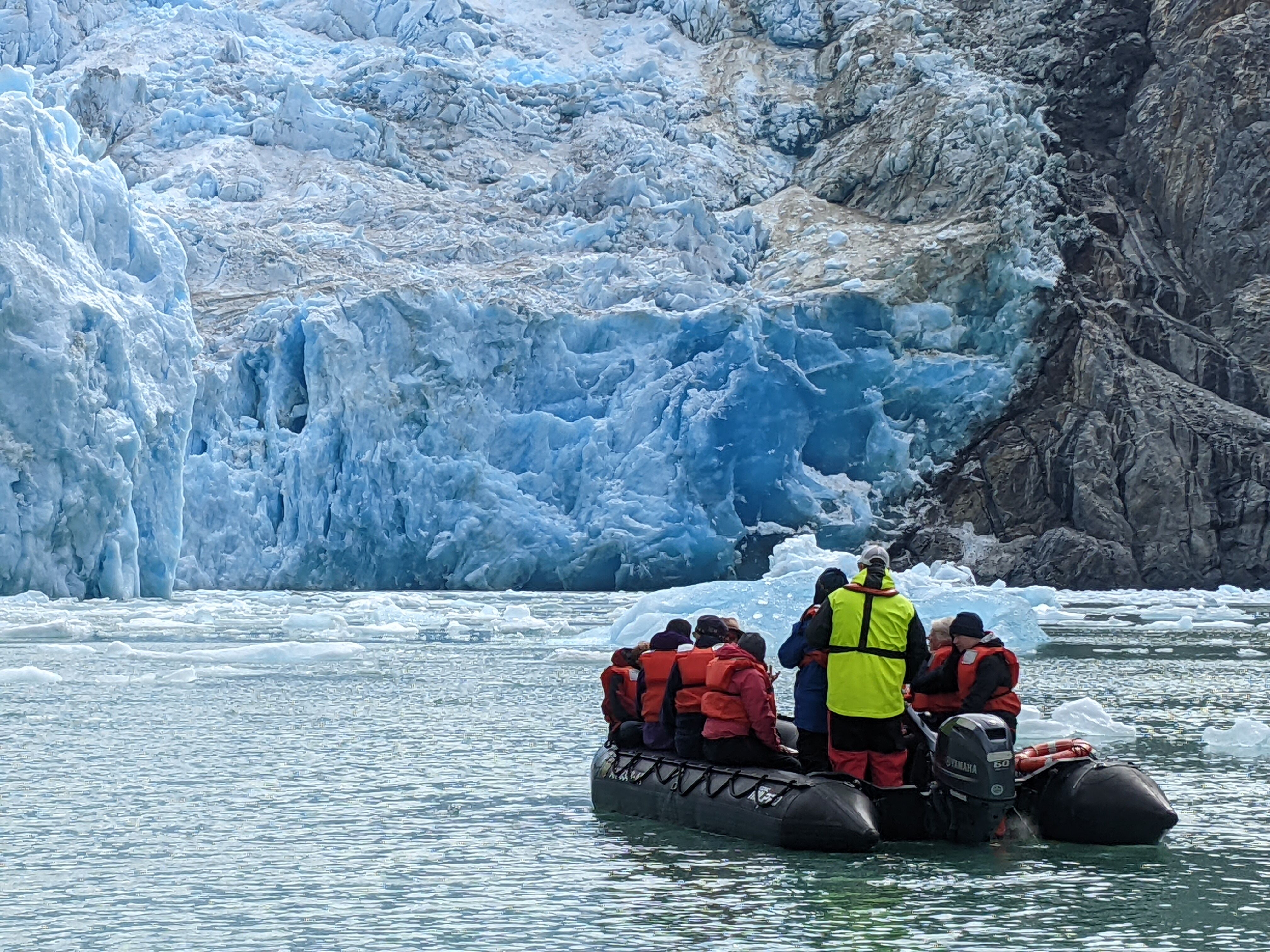 After sailing overnight to our northernmost destination at 70 degrees north, we awoke to the stunningly charming town of Uummannaq. With only about 1,400 residents, this town is still the eighth largest town in all of Greenland. The colorful homes are dwarfed by the monolithic mountain of the same name that shoots up almost 4,000 feet above the town. While floating along the shores of Uummannaq, many of us piled on layers of clothing and headed out to the outer decks to enjoy the soaring fulmars, gulls, and guillemots in the area. More than anything, we were in awe of the massive icebergs floating by in close proximity to both the town and our ship. Their size, textures, infinite shades of blues, and even the sounds they projected were all mesmerizing to each of us. Soon after, we warmed up inside the ship while enjoying a talk by Sisse Brimberg, our National Geographic photographer. During her engaging talk, she shared stories and images of what it is like to be on assignment as a professional photographer.