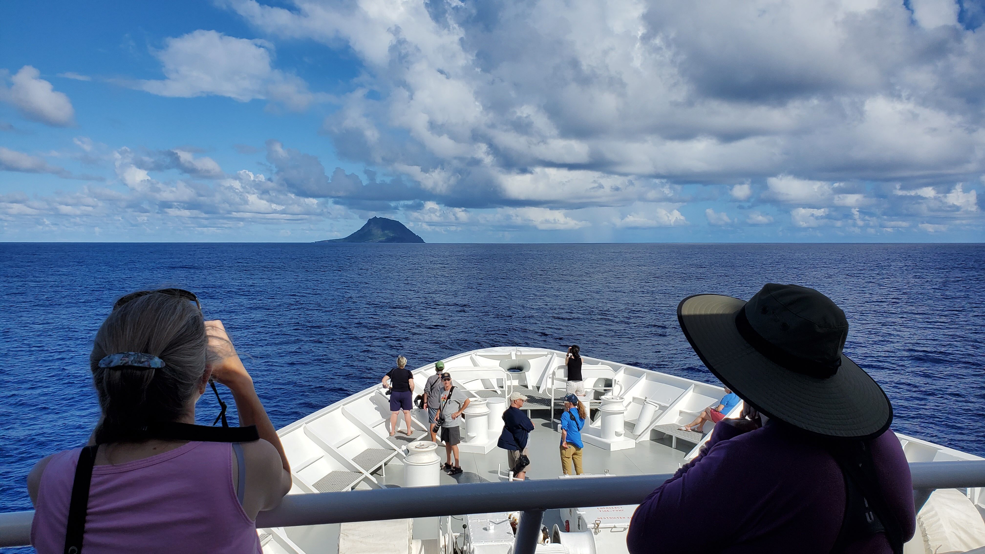 The Marquesas Islands form an archipelago of mystical islands. At 7:00 a.m., National Geographic Orion, our sunshine ship, pulled into the bay of the village of Vaitahu on the island of Tahuata. The conditions on the landing dock were somewhat challenging, but guests were able to visit this little village in style. Since it is a Sunday, guests were offered the opportunity to attend church. The service was delivered in the Marquesan language with Marquesan songs in a Marquesan designed church.
