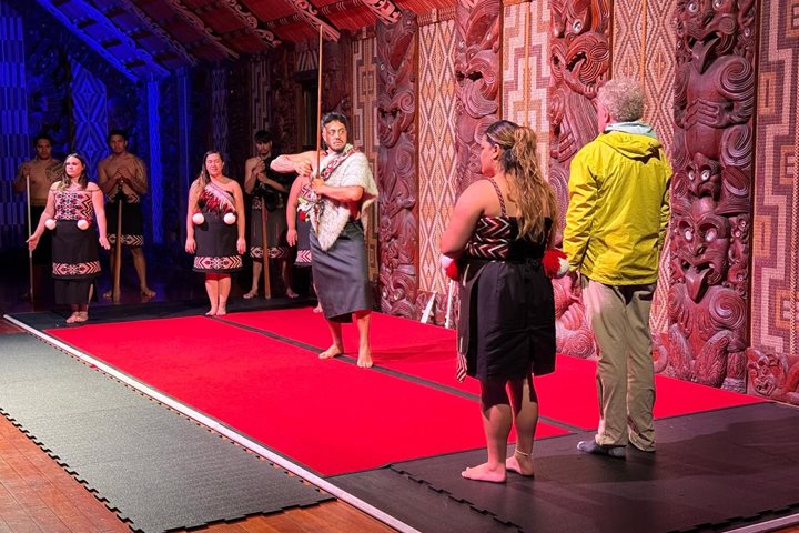 An invitation was extended to all guests to enter the Wharenui (ceremonial house) to experience a performance presented by the Maori dancers.