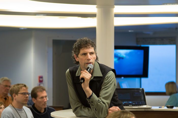 Our next destination was Surtsey, the newest Icelandic island formed from a volcanic eruption in 1963 but eroding away ever since then. This is a protected island where researchers have been monitoring the settlement of plants for the last 40 years and so only specific researchers can get on. Swimming around the island were a large pod of killer whales feeding on fish, with many fulmars and gannets above them looking for an easy prey.