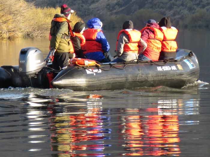 Delfín II kept moving upriver during the morning and getting closer to the Dorado River, where some of us explored by kayak and some others by skiff. We all enjoyed some more great wildlife watching, particularly during the late hours. We waited in the river until after sunset and turned on spotlights to look for the shining eyes of caiman. Due to a reflective layer on the back of their eyes that helped many nocturnal creatures to gather more light, caiman's eyes shine brightly when illuminated with a lamp and allowed us to find them from far away. We all had the chance to see several spectacled caimans up close and personal, and to learn more about one of the region's top predators, ending another awesome day exploring the Peruvian Amazon.