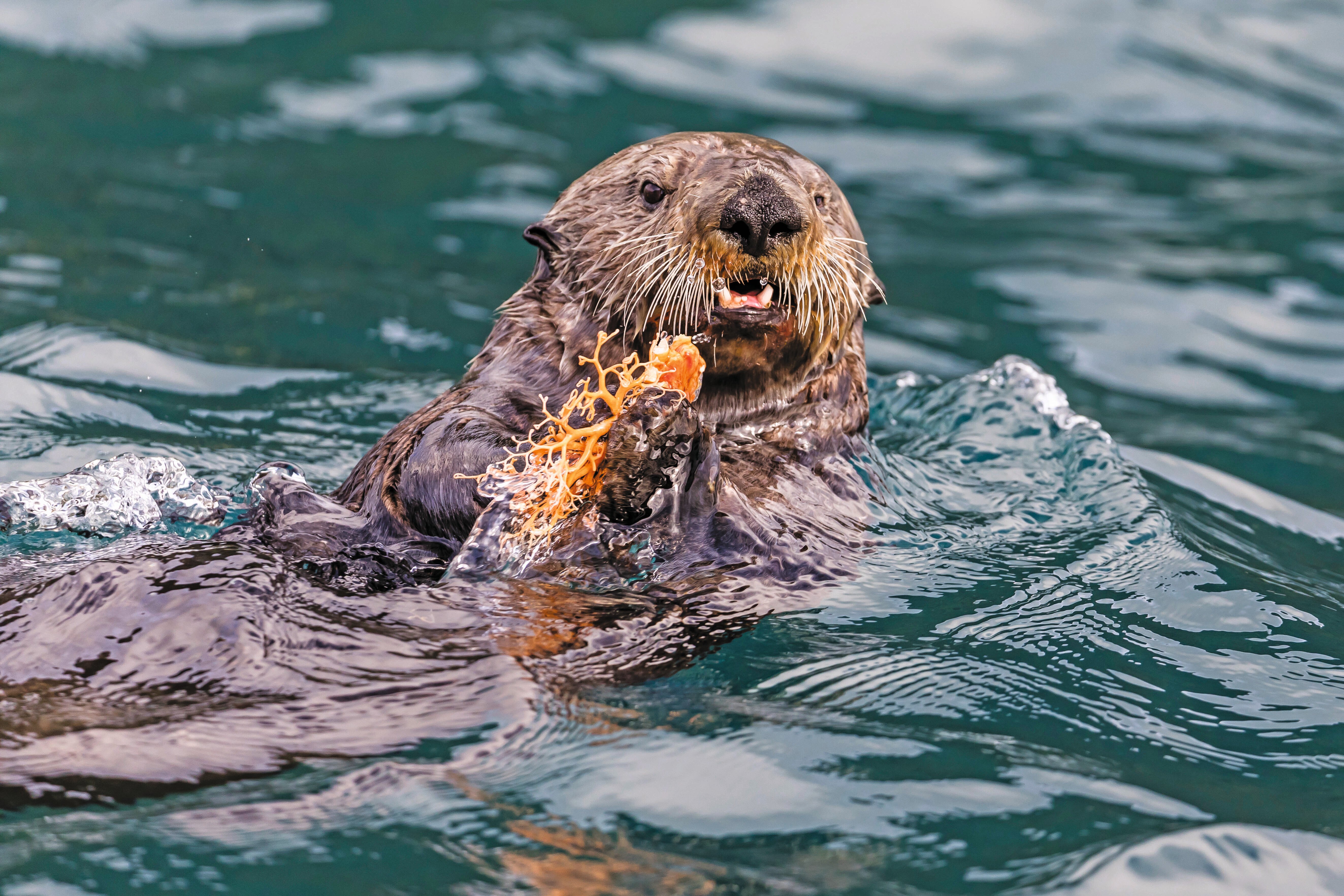 The nutrient-rich waters around the Inian Islands also support massive forests of bull kelp, a macroalgae that grows upwards of 60 feet and makes the ideal habitat for the one and only sea otter. Sea otters aren’t only adorable; they’re also highly important to the balance of the ocean ecosystem in Alaska. As a keystone species, they are dominant predators, keeping populations of sea urchins low and maintaining the overall biodiversity of the region's kelp forests.